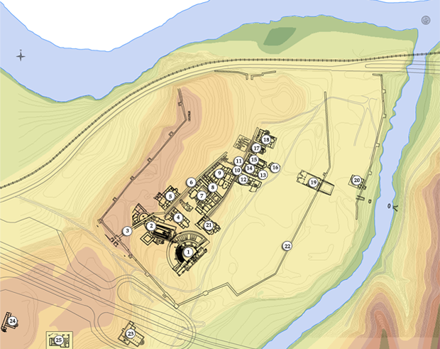 Use this map to locate the main monuments and plan your route through the archaeological site.